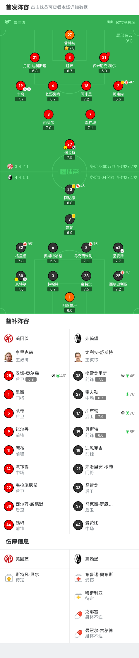 然而,美因茨队的胜势并未持续太久,第43分钟,多米尼克-科尔因犯规吃到红牌被罚出场,美因茨队陷入了人数劣势。这一情况给了弗赖堡机会,在下半场展开反击。第58分钟,京特尔送出助攻,格雷戈里奇抓住机会将比分扳平。